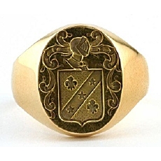 中世ヨーロッパ貴族が自らの紋章を彫り込んだ「シグネットリング」がそもそもの発祥になります。欧州貴族の紋章は、日本の家紋と違い一人にひとつづつ与えられるもので、封書の裏の封蝋にも使われました。つまり「実印」のようなものですね。