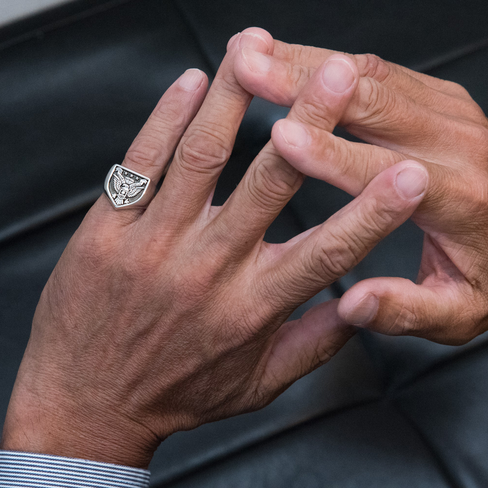 楯型トップのシグネットリングです。洋風紋章に良く合います。