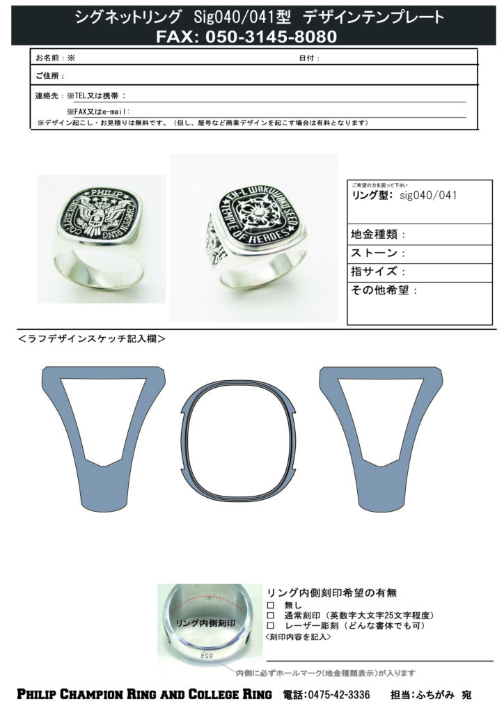 価格例:Sig040をシルバーでフルオーダー リング本体48,000円+型代15,000円=63,000円
