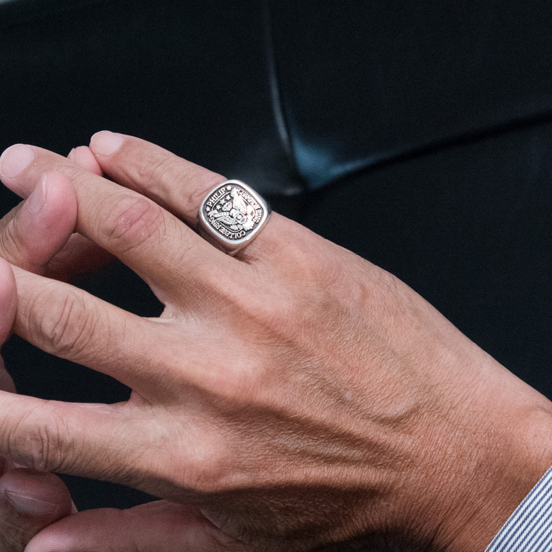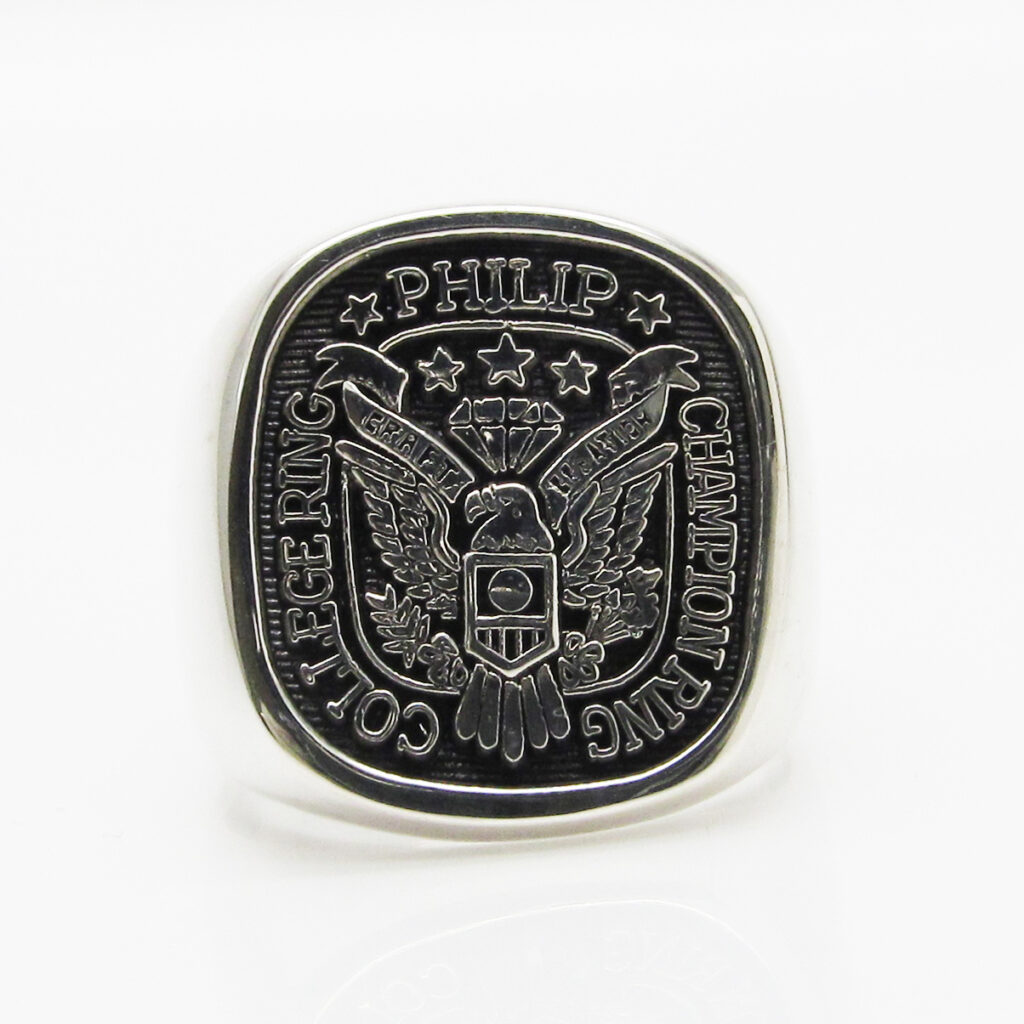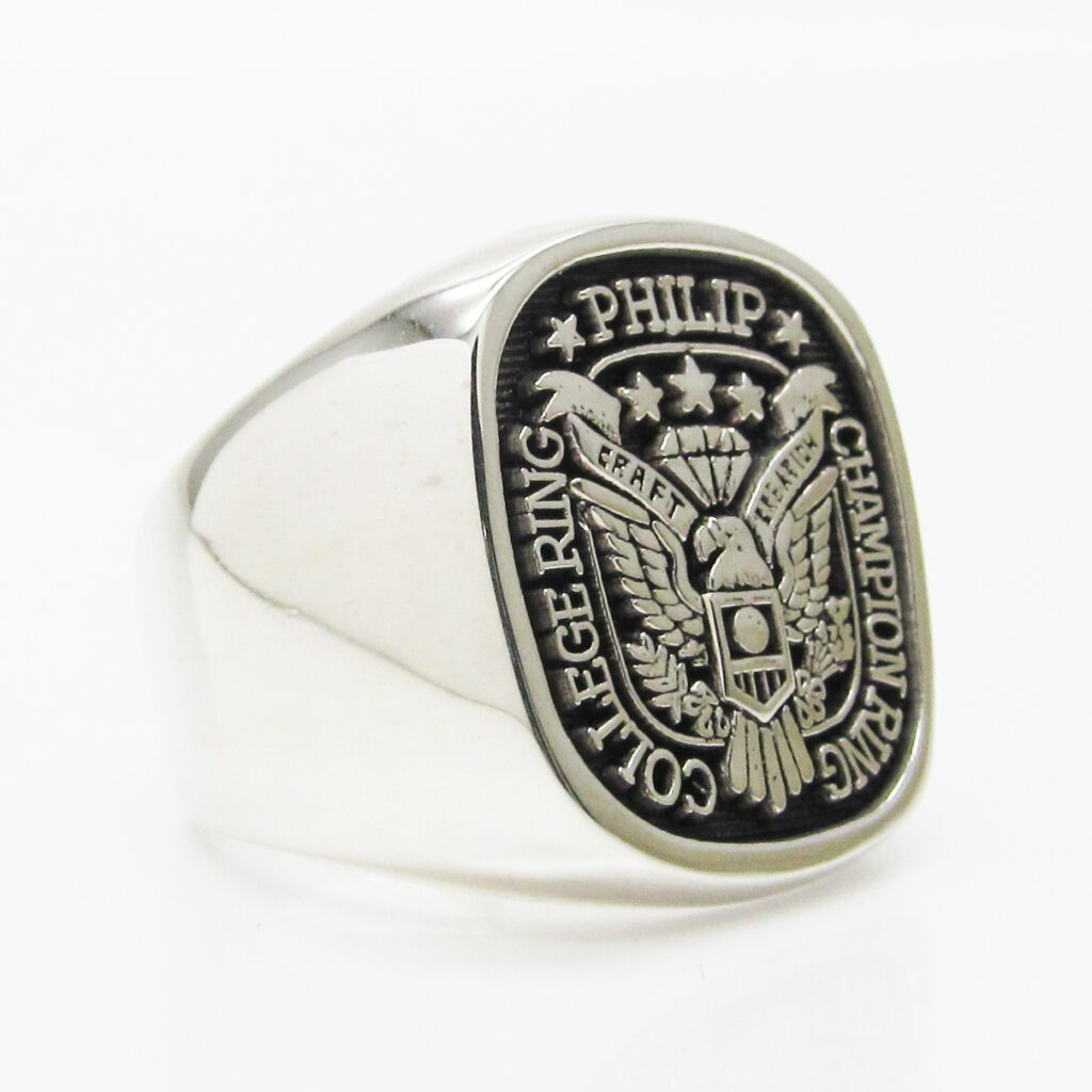 角が丸みをおびた四角形のシグネットリングです。