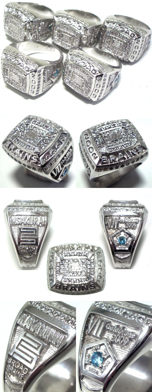 チャンピオンリングをベースモデルに、シルバー製、「ナチュラルフィニッシュ」で仕上げ、更にロジウムコーティング(白金プラチナの一種)されているので、艶やかで上品な出来上がりです。