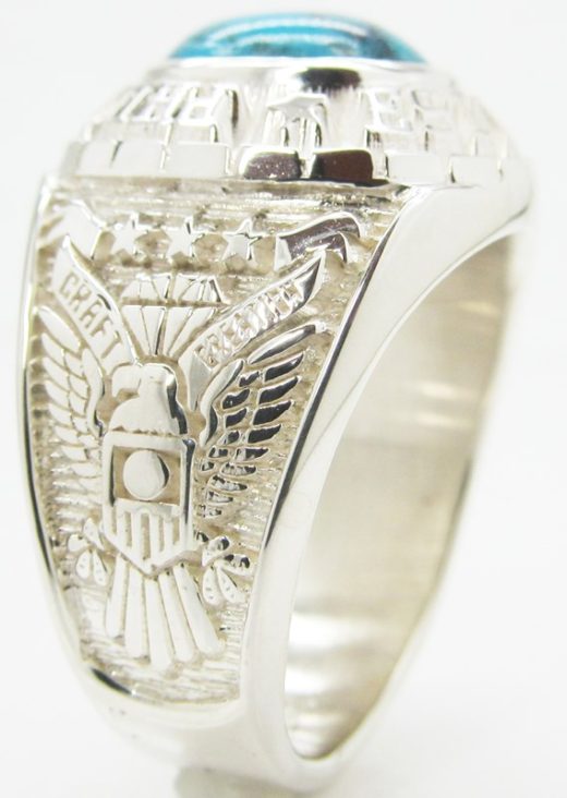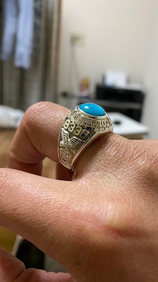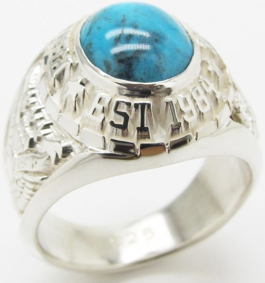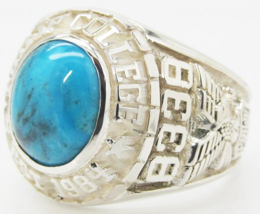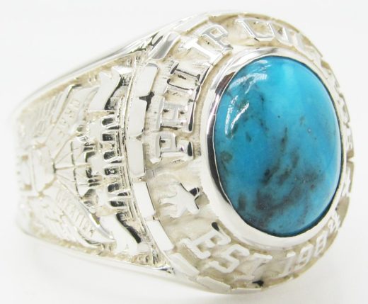 M様からのご注文は、クレストカレッジリングをナチュラル仕上げにしてアリゾナ産キングマンターコイズをとの事でした。ナチュラル仕上げですが、M様から「変色させたくない」との事で、特殊な変色防止加工を施しました。