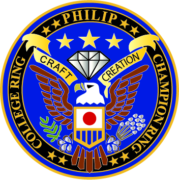 Philip College Ring楽天ショップ限定発売の「クレスト(紋章)カレッジリング」(Philip Champion Ring and College Ringの紋章とロゴ入りのオリジナル・カレッジリング)の製作事例です。