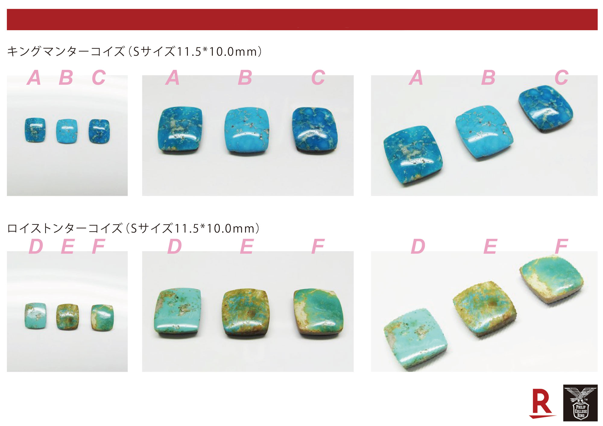 発売直後にご注文頂いたT様は、青系キングマンターコイズのオプションを選択頂きましたので、以下のような候補石リストをご提示してお選び頂きました。