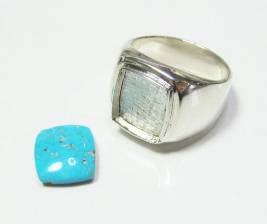 シンプルカレッジリング・キングマンターコイズ載せ