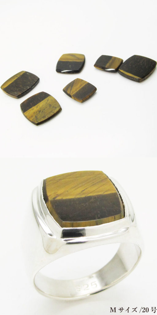 この天然石シンプルカレッジリングは、デフォルトのオニキス、有料オプションのタイガーアイとターコイズが選べます。