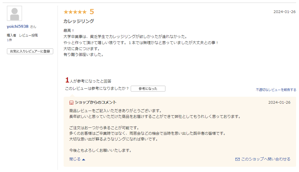 ご購入はこちらから:OB向け卒業記念カレッジリングプラン