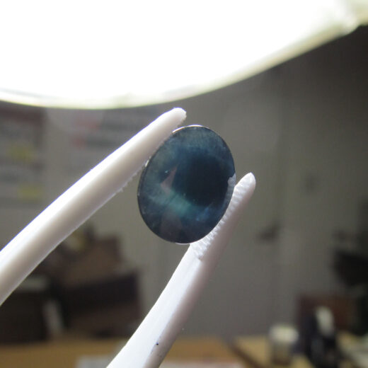 黒く見えますが、光が入るとブルーに見え、天然石らしい艶があり、断層も確認できます。